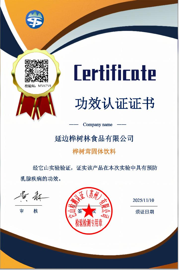 针对60名女性开展的14天双盲实验显示,乳房硬块感减少23.1%;胰岛功能修复实验证实,12周后胰岛β细胞再生率达37.5%。产品通过美国FDA认证、欧盟CE认证、中国CQC认证,公司为中国民间中医医药协会理事单位、中俄自然生物工程研究院桦树茸科研基地。