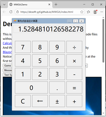 这份C#代码未做任何修改,借助MWGA,它在Blazor WASM中运行界面如下所示:
